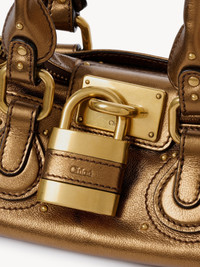 DESCRIPTION Rooted in the Maison's heritage, the iconic Paddington bag returns for its 20th anniversary with an updated design. Crafted from metallized buffalo leather in a slouchy silhouette, this small bag is lighter than the original, with a single zip for easy opening. The oversized padlock and C-shaped buckles add signature detail. PRODUCT DETAILS Small Paddington bag in metallized buffalo leather Main material: Buffalo leather Main lining: Cotton Pocket lining: Calfskin Padlock: Aluminum Carry: Hand & shoulder - 1 main compartment - 1 front flat pocket - 1 back flat pocket - 1 inside zipped pocket - Zip closure Comes with a dust bag - Width: 10.2"" (26 cm) - Height: 4.7"" (12 cm) - Depth: 4.7"" (12 cm) - Handle drop: 7.1"" (18 cm) To make this product, Chloe worked with Leather Working Group (LWG) certified leather manufacturers. LWG certifies tanneries based on their water and energy usage, management of chemicals, solid waste, and wastewater. Color: Golden Brown Item code: CH26SS805Q8420Y CARE INSTRUCTIONS In order to protect this article, we recommend that you: avoid overloading your bag avoid rubbing against abrasive materials shield it from humidity, light and heat avoid contact with liquids and greasy substances (makeup, cream) store your bag carefully in its dustcover when not in use avoid rubbing against color-contrasting clothes or materials to remove a water stain, gently soak up liquid by dabbing it with a white cloth should a scratch occur on the leather, you can gently massage it with the same type of cloth for all other issues, please contact the Chloe after-sales service or a specialist.