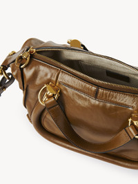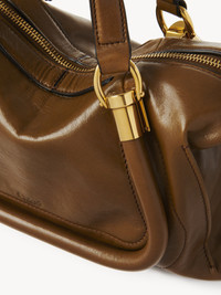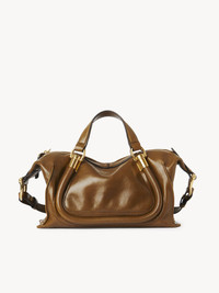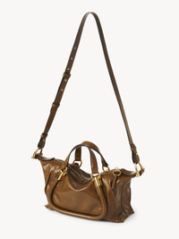 Crafted from natural shiny calfskin, the small Paraty 24 shoulder bag is inspired by the Chloe archives, combining sharp lines and rounded curves with gold hardware. Paraty 24 features double handles and a strap for hand, shoulder or cross-body carry. PRODUCT DETAILS Small shoulder bag in natural shiny calfskin Main material: Calfskin Main lining: 54% Cotton, 46% Linen Carry: Hand, shoulder & cross-body - 1 main compartment - 1 inside flat pocket - 1 adjustable & removable strap - Zipper closure Comes with a dust bag - Width: 10.6" (27 cm) - Height: 5.9" (15 cm) - Depth: 6.3" (16 cm) - Handle drop: 5.5" (14 cm) - Min. strap drop: 19.7" (50 cm) - Max. strap drop: 23.6" (60 cm) This purse is made from semi-aniline leather. The half-transparent finish imparts a robust nature to the product while preserving its natural character. Follow all care instructions on the insert. To make this product, Chloe worked with Leather Working Group (LWG) certified leather manufacturers. LWG certifies tanneries based on their water and energy usage, management of chemicals, solid waste, and wastewater. Color: Bronze Brown Item code: CHC24AS751N8220X