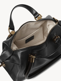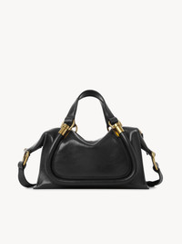 Crafted from natural shiny calfskin, the small Paraty 24 shoulder bag is inspired by the Chloé archives, combining sharp lines and rounded curves with gold hardware. Paraty 24 features double handles and a strap for hand, shoulder or cross-body carry. PRODUCT DETAILS Small shoulder bag in natural shiny calfskin Main material: Calfskin Main lining: 54% cotton, 46% linen Carry: Hand, shoulder & cross-body - 1 main compartment - 1 inside flat pocket - 1 adjustable & removable strap - Zip closure Comes with a dust bag - Width: 10.6" (27 cm) - Height: 5.9" (15 cm) - Depth: 6.3" (16 cm) - Handle drop: 5.5" (14 cm) - Min. strap drop: 19.7" (50 cm) - Max. strap drop: 23.6” (60 cm) This handbag is made from semi-aniline leather. The half-transparent finish imparts a robust nature to the product while preserving its natural character. Follow all care instructions on the insert. To make this product, Chloé worked with Leather Working Group (LWG) certified leather manufacturers. LWG certifies tanneries based on their water and energy usage, management of chemicals, solid waste, and wastewater. Color: Black Item code: CHC24AS751N82001