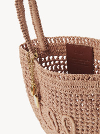 This small Summer Banana tote bag was crafted from raffia by a single artisan over 3 days in collaboration with Made For A Woman. The rounded compartment features a handwritten signature inspired by the Chloe heritage. A dangling chain and charms finish this roomy tote. PRODUCT DETAILS Small Summer Banana tote bag in raffia & calfskin Main material: Raffia Main lining: Raffia Inside trim: Calfskin Carry: Shoulder - 1 main compartment Comes with a dust bag - Width: 8.7" (22 cm) - Height: 11.8" (30 cm) - Depth: 0.8" (2 cm) This model has been handwoven with natural fibers, so the dimensions may slightly vary from one basket to another. - Handle drop: 7.5" (19 cm) To make this product, Chloe worked with Leather Working Group (LWG) certified leather manufacturers. LWG certifies tanneries based on their water and energy usage, management of chemicals, solid waste, and wastewater. This product was made in collaboration with Made For A Woman, a WFTO certified organization. Founded in 2019, Made For A Woman is a social entrepreneurship project rooted in Madagascar, dedicated to empowering artisans and their families by providing them with resources and opportunities to grow, thrive, and embrace their full potential. Color: Summery Beige Item code: CH25AS903P0824M