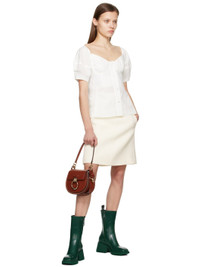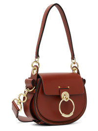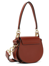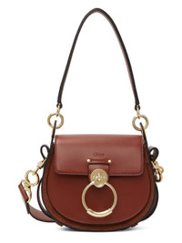 Buffed calfskin and suede shoulder bag in brown. · Detachable carry handle · Detachable and adjustable shoulder strap · Logo-engraved O-ring hardware at face · Embossed logo and concealed patch pocket at face · Foldover flap with magnetic press-stud closure · Card slot at interior · Cotton twill lining · Pale gold-tone hardware · H7 x W8 x D3 in Supplier color: Sepia brown Calfskin.