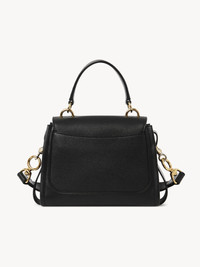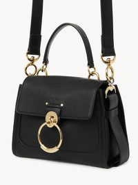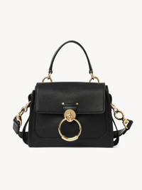 Crafted from an elegant combination of grained calfskin and shiny calfskin, this Tess mini bag is a practical day bag with multiple pockets and a roomy interior despite the compact design. The striking front loop showcases Chloé's "O" signature. Double straps (one short and one long) are secured by feminine hooks in golden and silver tones. A bold leather band contours the handbag's base. PRODUCT DETAILS Mini bag in grained & shiny calfskin Carry: hand, long shoulder & cross-body - Front flap with magnet closure - 1 front flat pocket - 1 inside zippered pocket - 1 back flat pocket - Mix of golden brass & silver finish - Cotton lining Comes with a dust bag - Width: 9.3" (23.5 cm) - Height: 5.9" (15 cm) - Depth: 4.1" (10.5 cm) - Strap length min: 18.7” (47.5 cm) - Strap length max: 22" (56 cm) This handbag is made from semi-aniline leather. The half-transparent finish imparts a robust nature to the product while preserving its natural character. Respect care instructions on the leaflet. Color: black Item code: CHC20AS143C62001