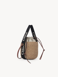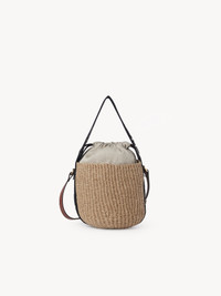 Crafted in a compact, round basket shape for an easy summer attitude, this small Woody basket is handwoven by independent craftswomen in Kenya. The line's signature Chloé logo is embroidered on contrast webbing. The basket has a drawstring fastening and a long leather strap for shoulder and cross-body wear. This basket was made in partnership with Mifuko, a certified WFTO supplier. In Swahili, “mifuko” means pocket. With fair pay and less dependence on unpredictable farming as a source of income, Mifuko empowers its artisans in Kenya and ensures no one is left with empty pockets. All about Woody... The Woody line is characterized by the signature Chloé logo carried over from the Maison's iconic mules. It showcases a modern, minimalist silhouette ranging from nano to large sizes. PRODUCT DETAILS Small basket in fair-trade paper, calfskin & webbing with Chloé logo Main material: Paper Secondary material: Calfskin Main lining: Linen Carry: Hand, shoulder & cross-body - Leather drawstring fastening - 1 main compartment - Non-removable & non-adjustable leather strap Comes with a dust bag - Width: 6.7" (17 cm) - Height: 6.3" (16 cm) - Depth: 6.3" (16 cm) - Handle drop: 5.9" (15 cm) - Strap drop: 19.3” (49 cm) This basket bag has been carefully threaded with natural fibers by master artisans. Each piece has been carefully selected for its natural beauty. Any irregularities and color variations are inherent to this kind of natural fiber and a result of artisanal finishing. Protection from direct light, heat and rain is advised. Should the item become wet, dry it immediately with a soft cloth. Due to its slightly abrasive surface, we advise you to avoid contact with delicate materials. Avoid intense rubbing with abrasive materials. Fill the bag with tissue paper to help maintain its shape and store in the provided dust bag. Leather parts can be cleaned using a soft and dry cloth. Color: Black & Beige Item code: CHC23AS381L18915
