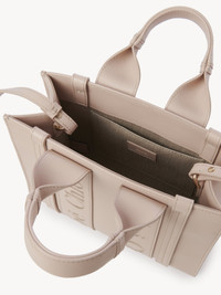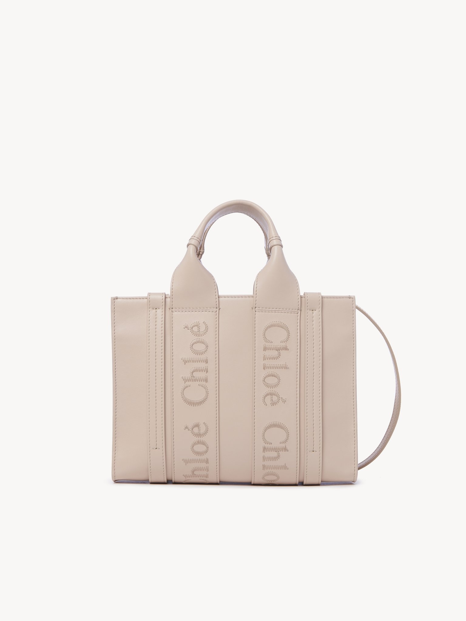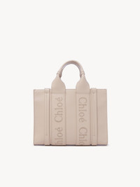 Crafted from smooth calfskin for a natural look with a unique, luxurious feel, this small Woody tote bag is a soft day-to-evening bag with a long, removable strap in addition to the top handles. The roomy inside compartment includes a practical flat pocket in leather for an elevated touch. Linen lining matches a refined finish with a lower environmental impact. Carry this versatile small purse on the arm, shoulder or cross-body. All about Woody... The Woody line is characterized by the signature Chloé logo carried over from the Maison's iconic mules. It showcases a modern, minimalist silhouette ranging from nano to large sizes. PRODUCT DETAILS Tote bag in smooth calfskin with embroidered Chloé logo Carry: shoulder, arm & cross-body - 2 short handles - Removable & adjustable long strap - 1 spacious main compartment - 1 internal flat pocket - Linen lining Comes with a dust bag - Width: 10.4" (26.5 cm) - Height: 7.9" (20 cm) - Depth: 3.1" (8 cm) - Handle drop: 4.3" (11 cm) - Strap drop: 20.5” (52 cm) This small purse is made from pure aniline leather. Tanning imparts a specific character to the skin, such as hues and wrinkles, combined with a light and transparent aniline finish. Respect care instructions on the leaflet. To make this product, Chloé worked with Leather Working Group (LWG) certified leather manufacturers. LWG certifies tanneries based on their water and energy usage, management of chemicals, solid waste, and wastewater. Color: Cement Pink Item code: CHC23US397I606J5