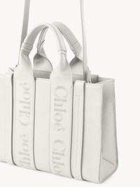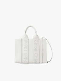 Crafted from smooth calfskin for a natural look with a unique, luxurious feel, this small Woody tote bag is a soft day-to-evening bag with a long, removable strap in addition to the top handles. The roomy inside compartment includes a practical flat pocket in leather for an elevated touch. Linen lining matches a refined finish with a lower environmental impact. Carry this versatile small purse on the arm, shoulder or cross-body. All about Woody... The Woody line is characterized by the signature Chloé logo carried over from the Maison's iconic mules. It showcases a modern, minimalist silhouette ranging from nano to large sizes. PRODUCT DETAILS Tote bag in smooth calfskin with embroidered Chloé logo Carry: shoulder, arm & cross-body - 2 short handles - Removable & adjustable long strap - 1 spacious main compartment - 1 internal flat pocket - Linen lining Comes with a dust bag - Width: 10.4" (26.5 cm) - Height: 7.9" (20 cm) - Depth: 3.1" (8 cm) - Handle drop: 4.3" (11 cm) - Strap drop: 20.5" (52 cm) This small bag is made from pure aniline leather. Tanning imparts a specific character to the skin, such as hues and wrinkles, combined with a light and transparent aniline finish. Respect care instructions on the leaflet. To make this product, Chloé worked with Leather Working Group (LWG) certified leather manufacturers. LWG certifies tanneries based on their water and energy usage, management of chemicals, solid waste, and wastewater. Color: White Item code: CHC22WS397I60101
