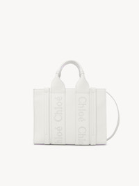 Crafted from smooth calfskin for a natural look with a unique, luxurious feel, this small Woody tote bag is a soft day-to-evening bag with a long, removable strap in addition to the top handles. The roomy inside compartment includes a practical flat pocket in leather for an elevated touch. Linen lining matches a refined finish with a lower environmental impact. Carry this versatile small purse on the arm, shoulder or cross-body. All about Woody... The Woody line is characterized by the signature Chloé logo carried over from the Maison's iconic mules. It showcases a modern, minimalist silhouette ranging from nano to large sizes. PRODUCT DETAILS Tote bag in smooth calfskin with embroidered Chloé logo Carry: shoulder, arm & cross-body - 2 short handles - Removable & adjustable long strap - 1 spacious main compartment - 1 internal flat pocket - Linen lining Comes with a dust bag - Width: 10.4" (26.5 cm) - Height: 7.9" (20 cm) - Depth: 3.1" (8 cm) - Handle drop: 4.3" (11 cm) - Strap drop: 20.5” (52 cm) This small purse is made from pure aniline leather. Tanning imparts a specific character to the skin, such as hues and wrinkles, combined with a light and transparent aniline finish. Respect care instructions on the leaflet. To make this product, Chloé worked with Leather Working Group (LWG) certified leather manufacturers. LWG certifies tanneries based on their water and energy usage, management of chemicals, solid waste, and wastewater. Color: White Item code: CHC23US397I60101