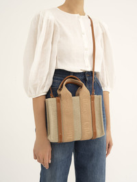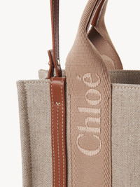 Showcasing a textural interplay of linen canvas and shiny calfskin, this small Woody tote bag is a soft accessory with a long, removable strap in addition to the top handles. The roomy inside compartment includes a practical flat pocket in leather for an elevated touch. Linen lining matches a refined finish with a lower environmental impact. Carry this versatile small bag on the arm, shoulder or cross-body. All about Woody... The Woody line is characterized by the signature Chloé logo carried over from the Maison's iconic mules. It showcases a modern, minimalist silhouette ranging from nano to large sizes. PRODUCT DETAILS Tote bag in linen canvas & shiny calfskin with embroidered Chloé logo Main material: Linen Secondary material: Calfskin Main lining: Linen Trim: Polyester Carry: shoulder, arm & cross-body - 2 short handles - Removable & adjustable long strap - 1 spacious main compartment - 1 internal flat pocket Comes with a dust bag - Width: 10.4" (26.5 cm) - Height: 7.9" (20 cm) - Depth: 3.1" (8 cm) - Handle drop: 4.3" (11 cm) - Strap drop: 20.5” (52 cm) This small bag is made from linen. In an effort to limit its environmental impact and have a positive influence on society, Chloé is accelerating its transition to more responsible sourcing. This progress is most notably reflected in the introduction of linen – an inherently lower-impact material – to the collection. Respect the care instructions on the leaflet. To make this product, Chloé worked with Leather Working Group (LWG) certified leather manufacturers. LWG certifies tanneries based on their water and energy usage, management of chemicals, solid waste, and wastewater. Color: Soft Tan Item code: CHC23AS397L17275