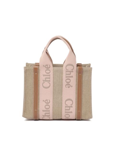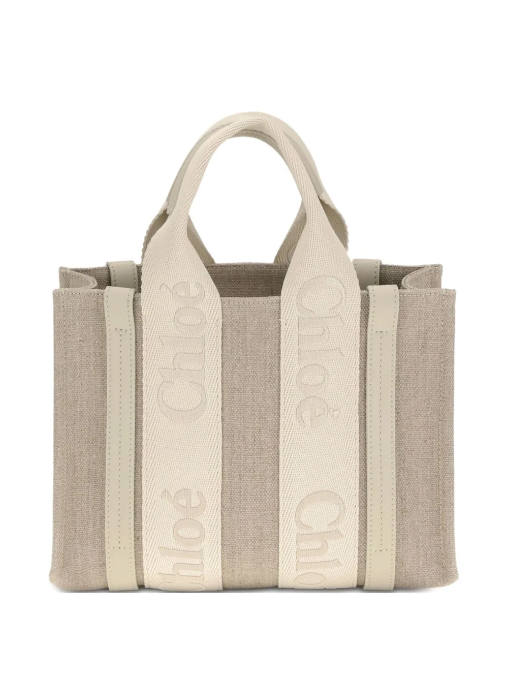 small Woody tote bag Highlights - Natural - Linen - Top handles - Logo detail - Leather trim Made in Italy Composition Outer: Linen/Flax 100%, CALFSKIN 100% Lining: Linen/Flax 68%, Cotton 32% SIZE & FIT Measurement DEPTH 3.14 in(8 cm) HEIGHT 7.48 in(19 cm) WIDTH 10.03 in(25.5 cm) HANDLE 4.33 in(11 cm)