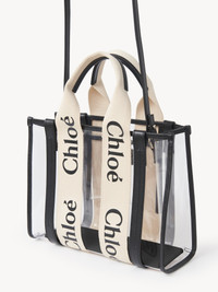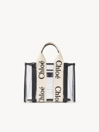 This small Woody jelly tote bag is elevated by contrasting vertical strips in calfskin and signature canvas ribbons featuring the Chloe logo. Carry in the hand with the double handles, or on the shoulder or crossbody with the removable strap. PRODUCT DETAILS Small Woody tote bag in jelly & calfskin Main material: Thermoplastic polyurethane Secondary material: Calfskin Main lining: Thermoplastic polyurethane Trim: Polyester Carry: Hand, shoulder & crossbody - 2 long handles - 1 spacious main compartment - 1 inside flat pocket - Adjustable & removable strap Comes with a dust bag - Width: 10.4" (26.5 cm) - Height: 7.9" (20 cm) - Depth: 3.1" (8 cm) - Handle drop: 4.3" (11 cm) - Min. strap drop: 20.5" (52 cm) - Max. strap drop: 22" (56 cm) This tote bag is made from a perfectly waterproof material for comfort and durability. In order to protect this tote bag, we recommend that you: - Avoid overloading the tote. - Avoid rubbing against abrasive materials. - Avoid prolonged contact with leather or synthetic materials. - Shield your tote from direct light and heat. - Store your tote in its dust bag when not in use. This material requires specific care: - Avoid rubbing against color-contrasting clothes or materials. - In the event of staining, gently clean your tote with clear or slightly soapy water, then wipe dry with a soft, dry cloth. - For all other issues, contact the Chloe after-sales department or a specialist. Color: White Item code: CH25US397P65101