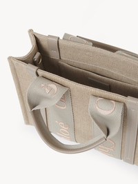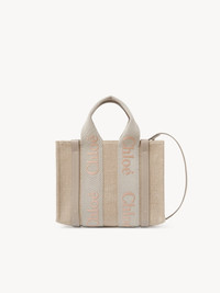 This small Woody tote bag is crafted from linen canvas, elevated by contrasting vertical strips in shiny calfskin and signature canvas ribbons embroidered with the Chloe logo. Carry in the hand with the double handles, or on the shoulder or crossbody with the removable strap. PRODUCT DETAILS Small Woody tote bag in linen canvas, calfskin and webbing with Chloe logo embroidery Main material: Linen Secondary material: Calfskin Main lining: 68% Linen, 32% Cotton Trim: Polyester Carry: Hand, shoulder & crossbody - 2 short handles - Removable & adjustable long strap - 1 spacious main compartment - 1 internal flat pocket Comes with a dust bag - Width: 10.4" (26.5 cm) - Height: 7.9" (20 cm) - Depth: 3.1" (8 cm) - Handle drop: 4.3" (11 cm) - Min. strap drop: 20.5" (52 cm) - Max. strap drop: 22" (56 cm) Keep your tote bag away from water (rain). If the leather gets wet, dry with a soft white cotton cloth to absorb water. This tote bag is woven from natural fiber in collaboration with Mifuko, which empowers its artisans in Kenya through fair pay and less dependence on unpredictable farming as a source of income. Each basket is a unique handmade piece that weaves together traditional Kenyan handcraft and the story of a strong, independent woman whose signature you will find on the label. Linen, hemp and ramie cultivations emit less greenhouse gases and require less water compared to other conventional natural fibers, which is why they are considered lower-impact materials by nature. To make this product, Chloe worked with Leather Working Group (LWG) certified leather manufacturers. LWG certifies tanneries based on their water and energy usage, management of chemicals, solid waste, and wastewater. Color: Vintage Khaki Item code: CHC23AS397L1723F