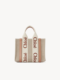 This small Woody tote bag is crafted from linen canvas, elevated by contrasting vertical strips in shiny calfskin and signature canvas ribbons embroidered with the Chloe logo. Carry in the hand with the double handles, or on the shoulder or crossbody with the removable strap. PRODUCT DETAILS Small Woody tote bag in linen canvas, calfskin and webbing with Chloe logo embroidery Main material: Linen Secondary material: Calfskin Main lining: 68% Linen, 32% Cotton Trimming: Polyester Carry: Hand, shoulder & crossbody - 2 short handles - Removable & adjustable long strap - 1 spacious main compartment - 1 internal flat pocket Comes with a dust bag - Width: 10.4" (26.5 cm) - Height: 7.9" (20 cm) - Depth: 3.1" (8 cm) - Handle drop: 4.3" (11 cm) - Min. strap drop: 20.5" (52 cm) - Max. strap drop: 22" (56 cm) Linen, hemp and ramie cultivations emit fewer greenhouse gases and require less water compared to other conventional natural fibers, which is why they are considered lower-impact materials by nature. To make this product, Chloe worked with Leather Working Group (LWG) certified leather manufacturers. LWG certifies tanneries based on their water and energy usage, management of chemicals, solid waste, and wastewater. Color: Wooden Orange Item code: CHC23AS397L17847