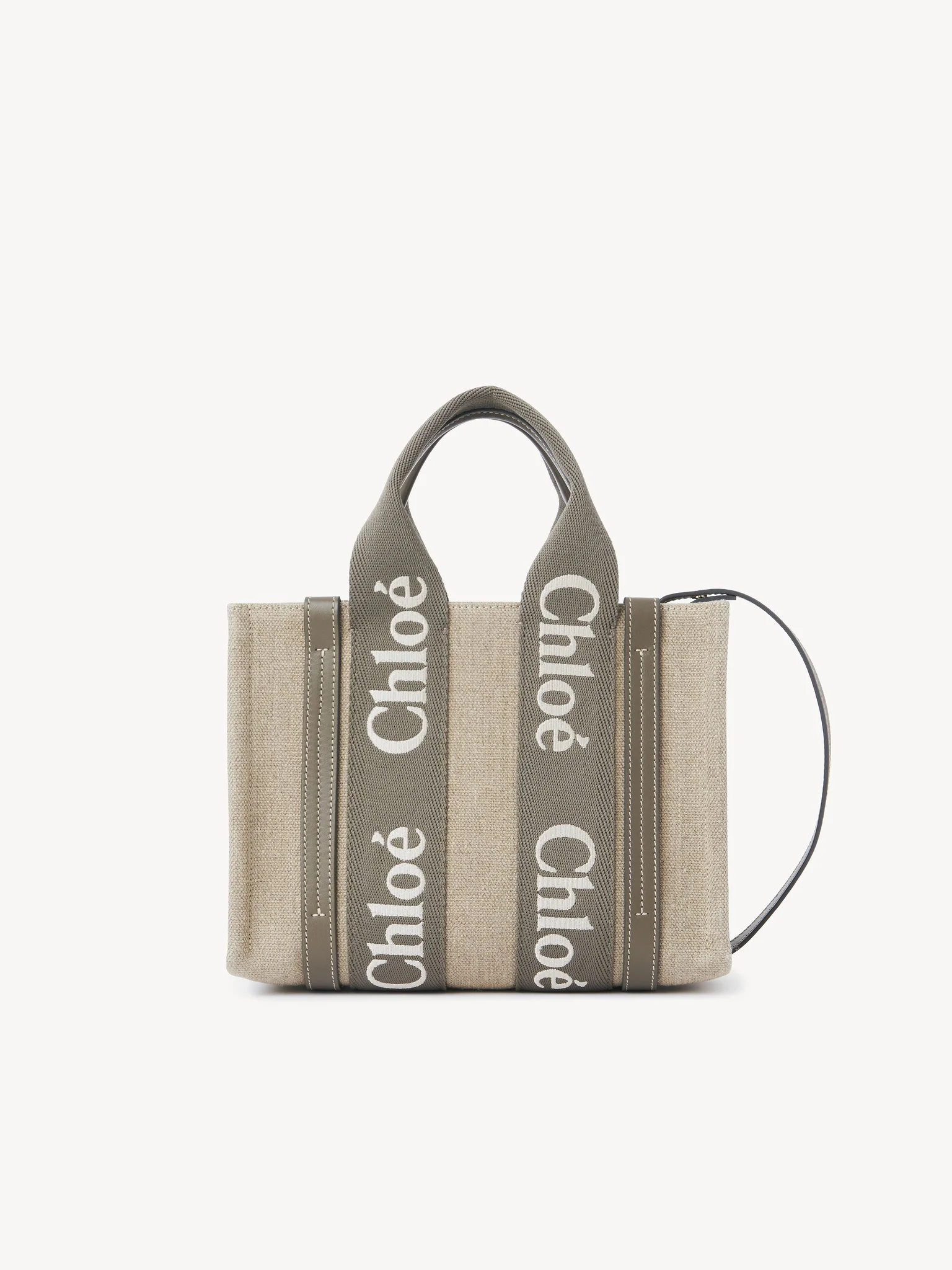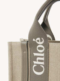 This small Woody tote bag is crafted from linen canvas, elevated by contrasting vertical strips in shiny calfskin and signature canvas ribbons embroidered with the Chloe logo. Carry in the hand with the double handles, or on the shoulder or crossbody with the removable strap. PRODUCT DETAILS Small Woody tote bag in linen canvas, calfskin and webbing with Chloe logo embroidery Main material: Linen Secondary material: Calfskin Main lining: 68% Linen, 32% Cotton Trimming: Polyester Carry: Hand, shoulder & crossbody - 2 short handles - Removable & adjustable long strap - 1 spacious main compartment - 1 internal flat pocket Comes with a dust bag - Width: 10.4" (26.5 cm) - Height: 7.9" (20 cm) - Depth: 3.1" (8 cm) - Handle drop: 4.3" (11 cm) - Min. strap drop: 20.5" (52 cm) - Max. strap drop: 22" (56 cm) Linen, hemp and ramie cultivations emit fewer greenhouse gases and require less water compared to other conventional natural fibers, which is why they are considered lower-impact materials by nature. To make this product, Chloe worked with Leather Working Group (LWG) certified leather manufacturers. LWG certifies tanneries based on their water and energy usage, management of chemicals, solid waste, and wastewater. Color: Flannel Grey Item code: CHC23AS397L17036