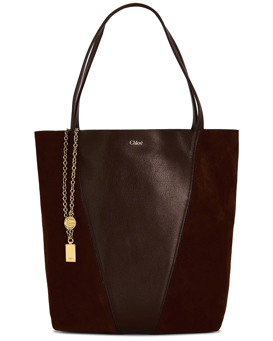Details - Grained buffalo and suede calfskin exterior with gold-tone hardware - Open top - One main compartment - Detachable gold-tone chain with Chloe pendants and lobster clasp closure - Measures approx 27 cm W x 30 cm H x 14 cm D - Shoulder strap with a 23 cm drop - Made in Italy - Our Style No. CLOE-WY1171 - Manufacturer Style No. 25WS811Q76