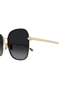 DETAILS AND INSIGHT Chloe square rigid sunglasses in grey. 57-19-145Mm Metal Style CH0255SK-001