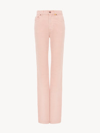 DESCRIPTION Straight jeans in garment-dyed organic cotton denim, signed with a gold-tone Chloe logo triangle at the front belt loop. PRODUCT DETAILS Straight jeans outer shell: 100% Cotton Fit: straight - The model is 5'10" (178 cm) and wears a prototype in size 26 - Chloe jeans - Front zipper & Chloe-engraved button fastening - Classic 5-pocket design - Belt loops An organic cotton farming system sustains the health of soils, ecosystems and people by eliminating the use of toxic and persistent organic pollutants and increasing water conservation. Color: Timid Pink Item code: CH26UDP112526C2 CARE INSTRUCTIONS To preserve the integrity of your garment wash it at a maximum of 30°C, using a mild process to protect its delicate nature. This garment cannot withstand any bleaching agent. To maintain its shape, gently iron this garment at a maximum sole plate temperature of 110°C, taking care to avoid any harsh pressure while ironing. Entrust this garment to a specialist for mild cleaning with tetrachloroethylene and solvent F, ensuring its delicate nature is maintained with the most care. To best preserve its form and texture, please do not tumble dry this garment. To maintain its delicate nature, do not wet clean this garment. TRACEABILITY Better traceability is central to improving our materials as well as social and environmental practices. Finishing: Italy Weaving: Italy Knitting: Italy