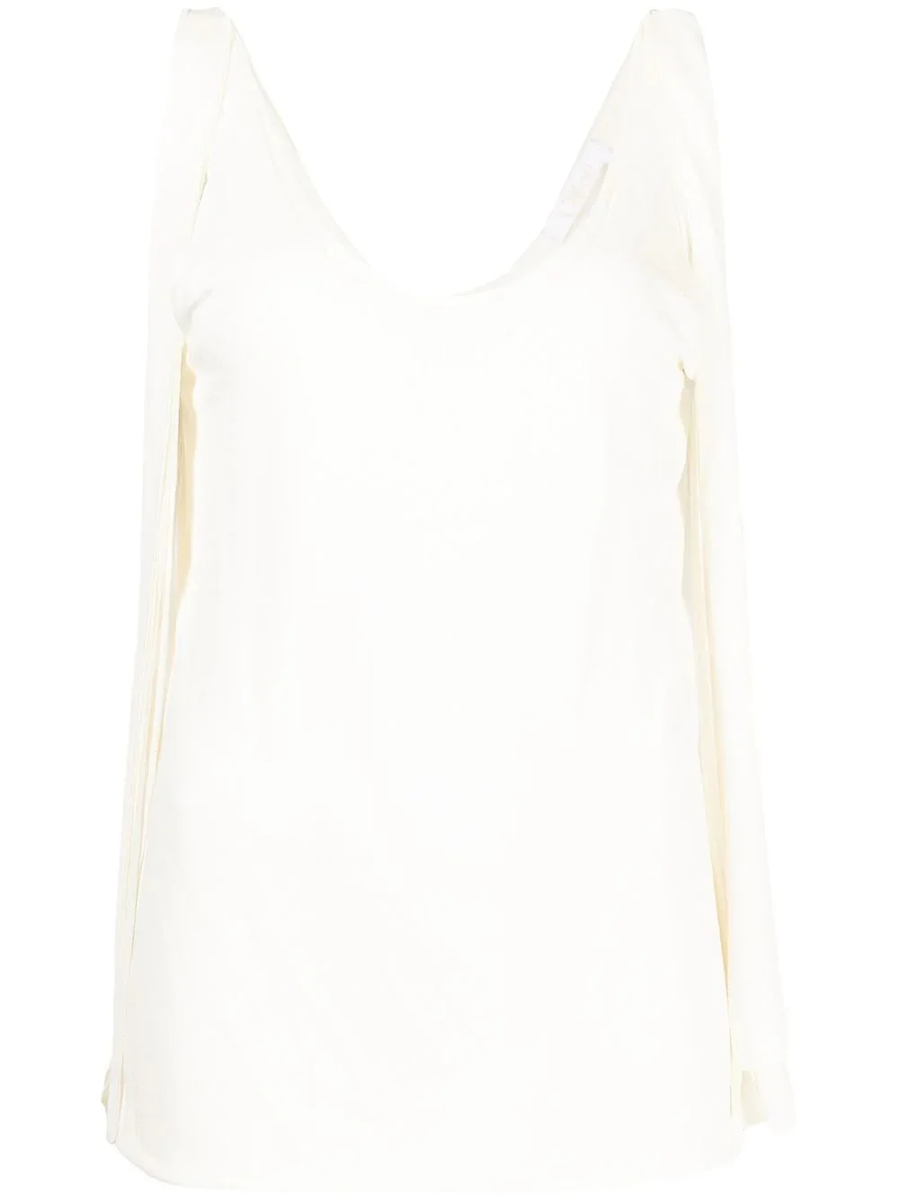 strap detail U-neck tank top white strap detailing U-neck V-back sleeveless straight hem Made in Italy Composition Viscose 100% SIZE & FIT Model measurements Height 5 ft 10 in(1.77 m) Bust/Chest 31.49 in(80 cm) Hips 35.43 in(90 cm) Waist 25.19 in(64 cm) FittingInformation This piece fits true to size. We recommend you get your regular size Cut for a loose fit Made with a mid-weight fabric Washing instructions Dry Clean Only