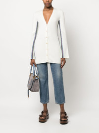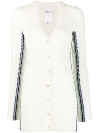 stripe-detail long wool cardigan white/multicolour wool knitted construction ribbed knit stripe detailing perforated detailing V-neck front button fastening long sleeves Imported Composition Wool 100% SIZE & FIT Model measurements Height 5 ft 9 in(1.76 m) Bust/Chest 33.07 in(84 cm) Hips 38.58 in(98 cm) Waist 24.8 in(63 cm) FittingInformation This piece fits true to size. We recommend you get your regular size Cut for a slim fit Made with a mid-weight fabric Washing instructions Machine Wash