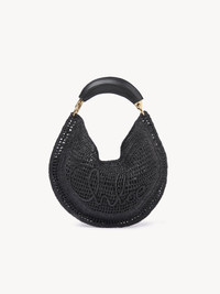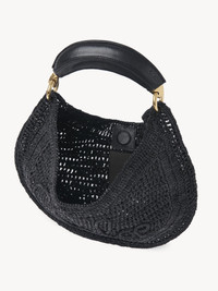 The Summer Banana hobo bag was crafted from raffia and calfskin by a single artisan over 4 days in collaboration with Made For A Woman. The curved silhouette features a banana-shaped handle and a handwritten signature inspired by the Chloe heritage. PRODUCT DETAILS Summer Banana hobo bag in raffia & calfskin Main material: Cellulose paper Main lining: Cellulose paper Trim: Buffalo leather Carry: Shoulder - 1 main compartment - 1 inside flat pocket - Magnet closure Comes with a dust bag - Width: 14.2" (36 cm) - Height: 8.4" (21.5 cm) This model has been handwoven with natural fibers, so the dimensions may slightly vary from one basket to another. - Handle drop: 5.9" (15 cm) This hobo bag is made from a woven fabrication adapted to leather goods requirements. A water-repellent treatment was applied to the fabric, but rain exposure should be avoided. Avoid rubbing this material against color-contrasting materials and shield it from humidity, light, heat, liquids and greasy substances. Follow all care instructions on the insert. To make this product, Chloe worked with Leather Working Group (LWG) certified leather manufacturers. LWG certifies tanneries based on their water and energy usage, management of chemicals, solid waste, and wastewater. Made For A Woman is a social enterprise based in Madagascar that aims to empower vulnerable women, support them with living wages and help to build their life with their family. Color: Black Item code: CH25US902P08001