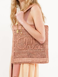 The Summer Banana tote bag was crafted from raffia and calfskin by a single artisan over 4.5 days in collaboration with Made For A Woman. The front features a handwritten signature inspired by the Chloe heritage. A dangling chain and charms finish this spacious tote. PRODUCT DETAILS Summer Banana tote bag in raffia & calfskin Main material: Cellulose paper Main lining: Cellulose paper Trim: Buffalo leather Carry: Shoulder - 2 main compartments - Magnet closure Comes with a dust bag - Width: 13" (33 cm) - Height: 14.6" (37 cm) - Depth: 0.8" (2 cm) This model has been handwoven with natural fibers, so the dimensions may slightly vary from one basket to another. - Handle drop: 7.9" (20 cm) This tote bag is made from a woven fabrication adapted to leather goods requirements. A water-repellent treatment was applied to the fabric, but rain exposure should be avoided. Avoid rubbing this material against color-contrasting materials and shield it from humidity, light, heat, liquids and greasy substances. Follow all care instructions on the insert. To make this product, Chloe worked with Leather Working Group (LWG) certified leather manufacturers. LWG certifies tanneries based on their water and energy usage, management of chemicals, solid waste, and wastewater. Made For A Woman is a social enterprise based in Madagascar that aims to empower vulnerable women, support them with living wages and help to build their life with their family. Color: Summery Beige Item code: CH25US901P0824M