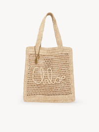The Summer Banana tote bag was crafted from raffia and calfskin by a single artisan over 4.5 days in collaboration with Made For A Woman. The front features a handwritten signature inspired by the Chloe heritage. A dangling chain and charms finish this spacious tote. PRODUCT DETAILS Summer Banana tote bag in raffia & calfskin Main material: Raffia Main lining: Raffia Trim: Buffalo leather Carry: Shoulder - 2 main compartments - Magnet closure Comes with a dust bag - Width: 13" (33 cm) - Height: 14.6" (37 cm) - Depth: 0.8" (2 cm) This model has been handwoven with natural fibers, so the dimensions may slightly vary from one basket to another. - Handle drop: 7.9" (20 cm) To make this product, Chloe worked with Leather Working Group (LWG) certified leather manufacturers. LWG certifies tanneries based on their water and energy usage, management of chemicals, solid waste, and wastewater. Made For A Woman is a social enterprise based in Madagascar that aims to empower vulnerable women, support them with living wages and help to build their life with their family. Color: Hot Sand Item code: CH25US901P0824P