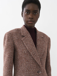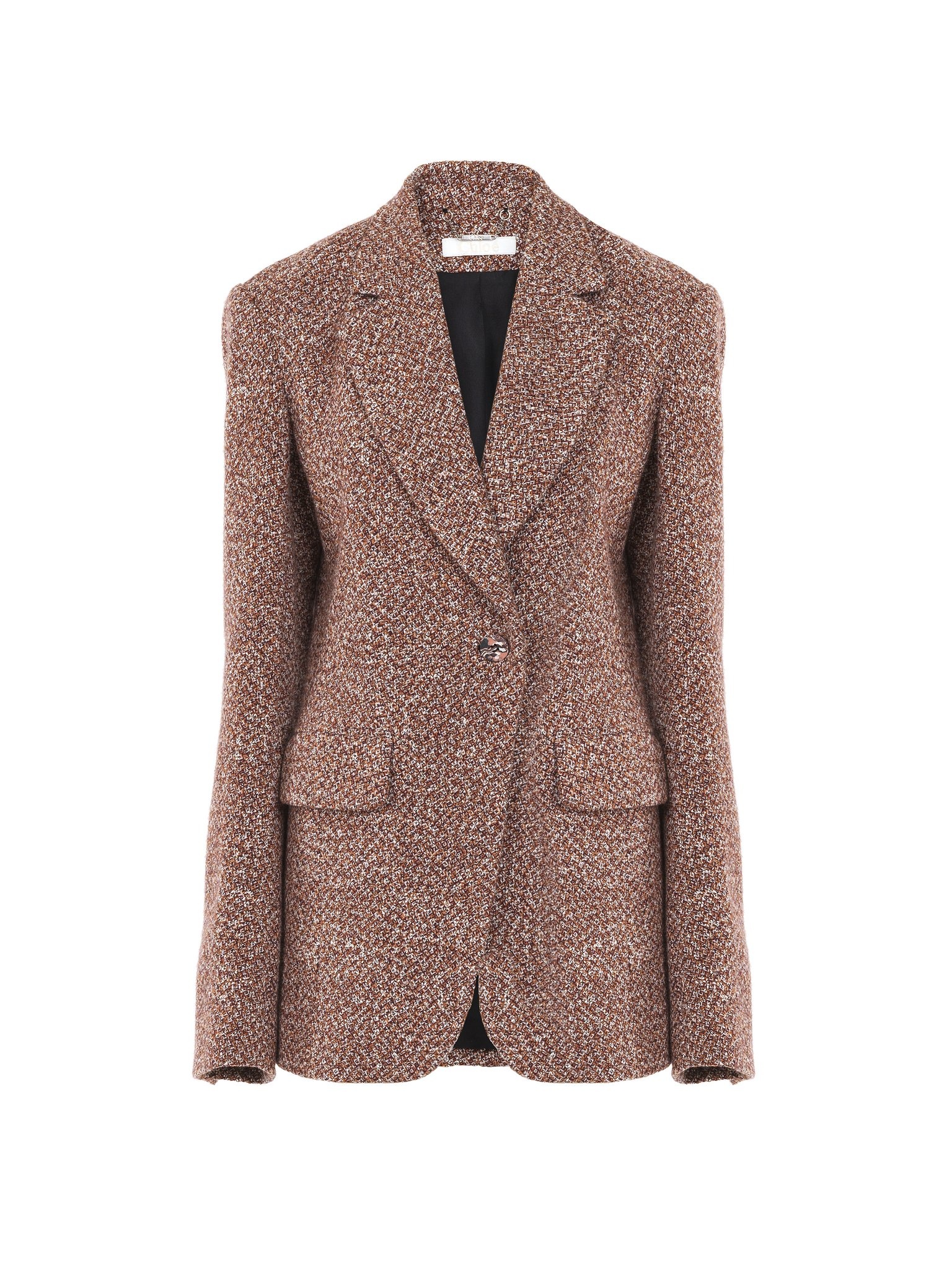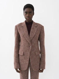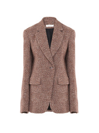 This tailored jacket is made from a tie-dye fabric with a multicolor thread and a pop of fuchsia for a fall hue. The single-breasted silhouette, flap pockets and mid-season tailoring instill this piece with timeless elegance. Matching the warm colorway, a hand-painted ceramic button lends a refined finish. PRODUCT DETAILS Tailored jacket main material: 55% Wool, 36% Cotton, 9% Polyacrylic Inner canvas: 90% Viscose, 10% Wool Lining: 100% Silk Front button: 100% Ceramic Cuff buttons: 100% Horn Care: dry clean only Fit: tailored - The model is 5’10” (178 cm) and wears a prototype in size 36 - Single-breasted jacket - Hand-painted ceramic button fastening The porcelain button on this item has been crafted and hand-stamped by a French ceramicist. Multiple firings (2 to 5 for the most intricate pieces) guarantee a glossy finish, rendering the finished piece completely waterproof and ensuring the stability and permanence of the colors and enamels over time. Given the artisanal nature of the buttons, each one is unique and may vary slightly. In order to preserve their beauty over time, we recommend avoiding any impact and contact with perfume, alcohol or chlorine. Color: Multicolor Item code: CHC23AVE181799CB
