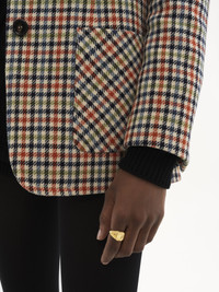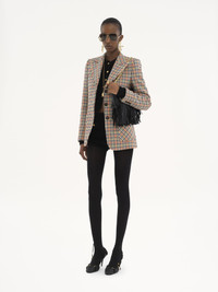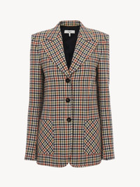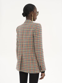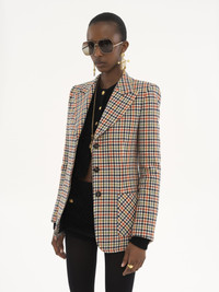 Single-breasted tailored jacket in lower-impact check wool, with horn buttons and front pockets. PRODUCT DETAILS Single-breasted tailored jacket outer shell: 90% Wool, 10% Polyamide Lining: 100% Silk Buttons: 100% Horn Fit: tailored - The model is 5'10" (178 cm) and wears a prototype in size 36 - Check wool jacket - Engraved horn buttons - Front patch pockets Care: dry cleaning only The wool used in this product comes from a farm that respects animal welfare, maintains soil health, protects biodiversity and promotes native species. Color: Multicolor Item code: CH25SVE513039CA