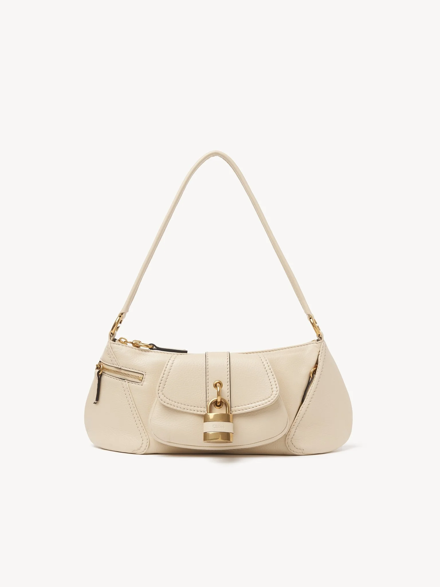The 99 shoulder bag is crafted from shiny grained calfskin, featuring cuts, zippers, leather patches and double stitching. The roomy front pocket is embellished with a large engraved Paddington lock. PRODUCT DETAILS Shoulder bag in shiny grained calfskin Main material: Calfskin Main lining: 54% Cotton, 46% Linen Flap lining: Cowhide Carry: Shoulder - 1 main compartment - 1 inside flat pocket - 2 outside front pockets (zip closures) - 1 outside front pocket (magnetic flap closure) - Zip closure Comes with a dust bag - Width: 14.2" (36 cm) - Height: 5.1" (13 cm) - Depth: 3.9" (10 cm) - Handle drop: 11" (28 cm) This handbag is made from semi-aniline leather. The half-transparent finish imparts a robust nature to the product while preserving its natural character. Follow all care instructions on the insert. Color: Sweet Beige Item code: CHC24AS710N8424Q