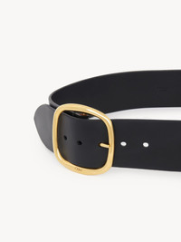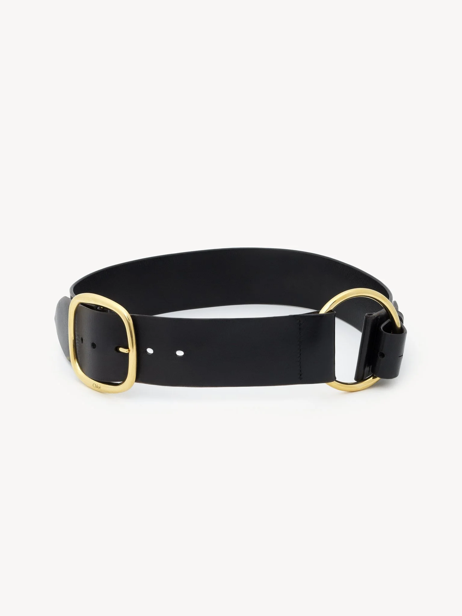 Chloe Anita leather belt in vintage-effect cowhide with a large gold-tone ring and Chloe-engraved buckle, rooted in the Maison's heritage. PRODUCT DETAILS Leather belt in cowhide, brass & zamak - S: 33.5" (85 cm) - M: 35.4" (90 cm) - L: 37.4" (95 cm) - Width: 2.2" (5.5 cm) - Buckle closure & adjustment holes - Chloe logo engraving - Wear low on the hips Color: Black Item code: CH25WBB01CWZ001