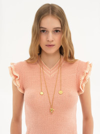 DESCRIPTION Chloe Charms necklace in vintage gold brass. An adjustable double chain is detailed with three pendants rooted in the Maison's DNA: a horse head and two medals, one contoured with a lace-effect trim and the other signed with the Chloe Paris logo. A Chloe logo tag signs this piece. PRODUCT DETAILS Necklace in 100% brass - One size only - 3 adjustment holes - Chloe logo tag Color: Vintage Gold Item code: CHC25SFO06CB79DC CARE INSTRUCTIONS To ensure this item's quality and longevity, wear it regularly and avoid exposure to direct sunlight and heat. Avoid impact, and contact with water, perfume or chlorine. Store your jewel in its pouch and box when not in use.