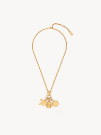 DESCRIPTION Chloe Charms necklace in vintage gold brass. A cluster of three pendants – a horse head, the letter C and a Chloe Horse Medal – is set on an adjustable chain in an exploration of the Maison's heritage. A gold-tone Chloe logo plate signs this piece. PRODUCT DETAILS Necklace in 100% brass - One size only - Adjustable - Metal Chloe logo plate Color: Vintage Gold Item code: CH25AJN03CB79DC CARE INSTRUCTIONS To ensure this item's quality and longevity, wear it regularly and avoid exposure to direct sunlight and heat. Avoid impact, and contact with water, perfume or chlorine. Store your jewel in its pouch and box when not in use.