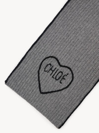 DESCRIPTION Chloe Encoeur scarf in a chunky wool and cashmere knit, featuring contrast edges and Chloe logo embroidery surrounded by a heart. PRODUCT DETAILS Scarf in wool & cashmere - Size: 78.7" x 9.8" (200 cm x 25 cm) Color: Divine Grey Item code: CH26SKS05WCS012 CARE INSTRUCTIONS To preserve the integrity of your garment, please refrain from washing, entrusting its care to professional cleaning services for optimal maintenance.