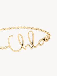Chloe Iconic chain belt in vintage gold brass, inspired by a design rooted in the Maison's heritage. The chain features two Chloe Iconic signature buckles. PRODUCT DETAILS Chain belt in 100% brass - One size only - Adjustable - Chloe-logo buckles length: 11.8" (30 cm) - Chloe-logo buckles height: 2.6" (6.5 cm) - Signature chain belt - Hook closure - Wear on waist or hips - Wear with one Chloe logo at the front and one at the back To ensure this item's quality and longevity, wear it regularly and avoid exposure to direct sunlight and heat. Avoid impact and contact with water, perfume or chlorine. Store your belt in its pouch and box when not in use. Color: Vintage Gold Item code: CHC25UC019CB79DC