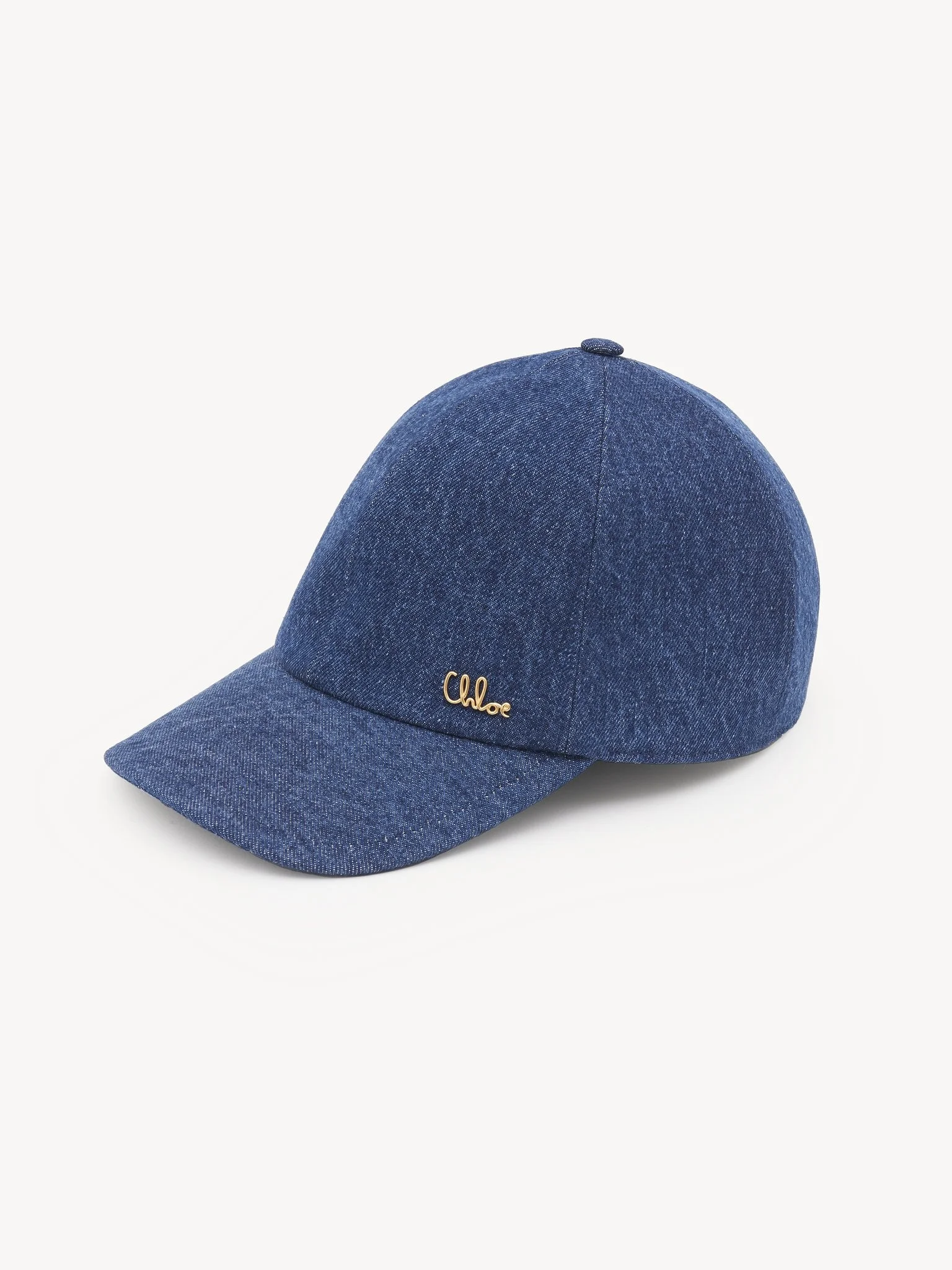 Swing cap in organic cotton denim, detailed with a gold-toned Chloe signature rooted in the Maison's heritage. The back strap with a Chloe-engraved brass closure adjusts the fit. PRODUCT DETAILS Cap in organic cotton denim with brass Chloe logo - S: 22" (56 cm) - M: 22.8" (58 cm) - Adjustable strap at back Our hats are crafted artisanally in Italy and their materials are chosen with care. Any inconsistencies or color differences are inherent to this type of fiber and the artisanal process. To ensure its quality and longevity, avoid contact with water, alcohol, perfume, chlorine and abrasive surfaces. Store your hat inside a pouch or in its box, in a dry area. An organic cotton farming system sustains the health of soils, ecosystems and people by eliminating the use of toxic and persistent organic pollutants and increasing water conservation. Color: Ocean Blue Item code: CHC25SD019GDN422