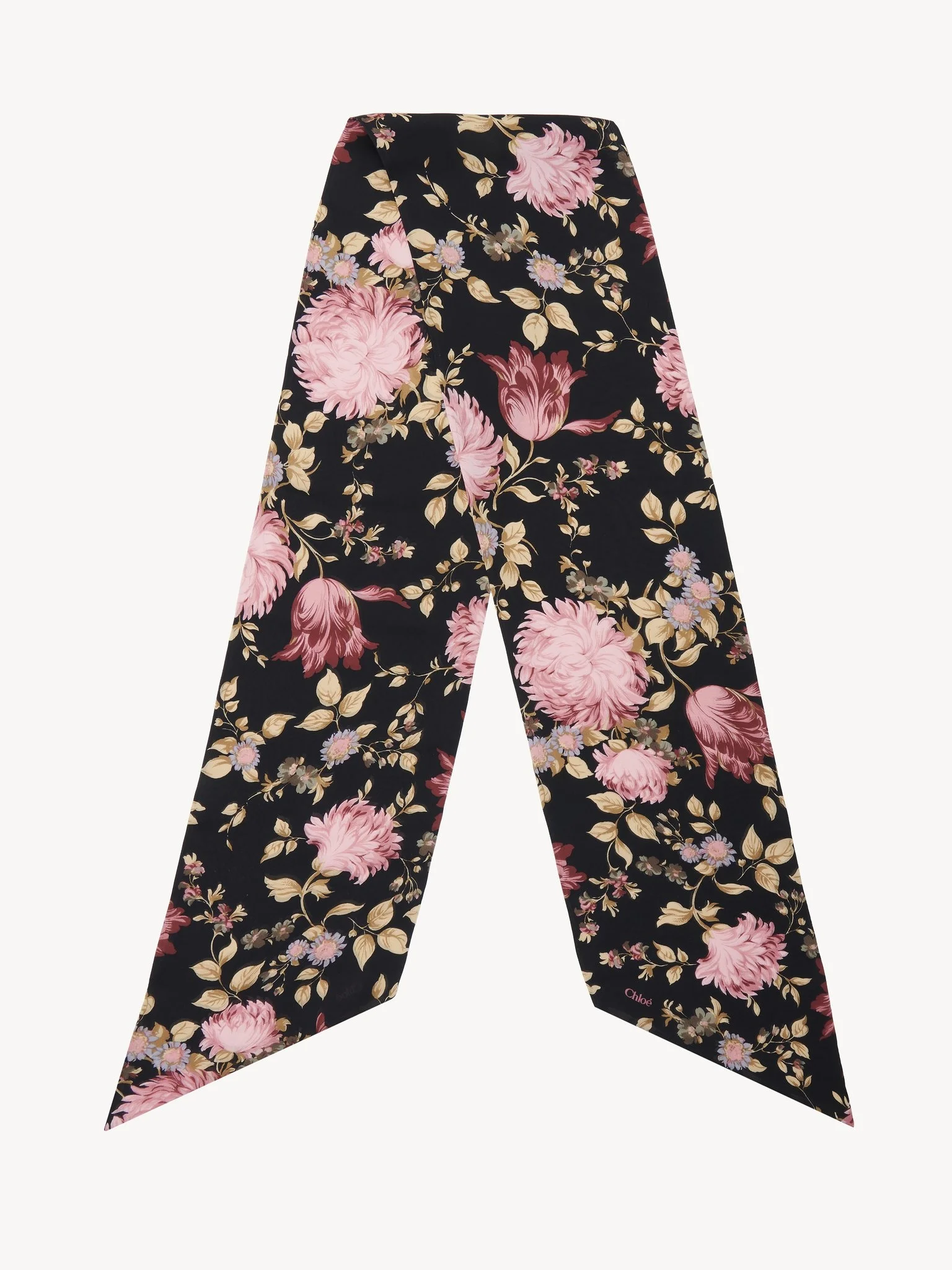 THE CHLOÉ PEONIES WIDE BANDEAU SCARF IN SILK CHARMEUSE