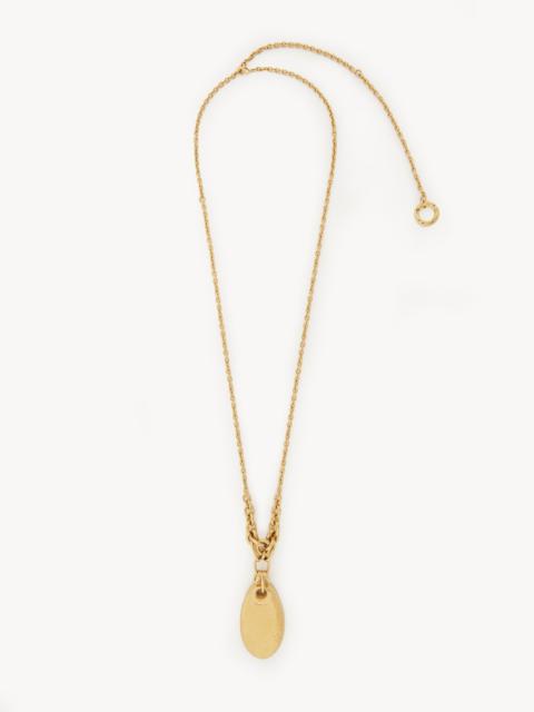 DESCRIPTION Chloe Petal long pendant necklace in vintage gold brass, combining a chain with a large petal pendant. Hammered by hand, the pendant has a rich texture that catches the light. Combine this necklace with other pieces from the jewelry collection. PRODUCT DETAILS Pendant necklace in 100% brass - One size only - Adjustable length - Chloe logo engraving Color: Vintage Gold Item code: CHC24AFO66CB79DC CARE INSTRUCTIONS To ensure this item's quality and longevity, wear it regularly and avoid exposure to direct sunlight and heat. Avoid impact, and contact with water, perfume or chlorine. Store your jewel in its pouch and box when not in use.