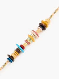 DESCRIPTION Chloe Plage necklace combining a pastel-hued cotton-viscose braid with gold brass embellishments and multicolor resin beads in a variety of shapes and sizes. A gold-tone Chloe logo plate signs this piece. PRODUCT DETAILS Necklace in cotton, viscose, resin & brass - One size only - Chloe logo engravings Color: Beige Multicolor Item code: CH25AJN01CRB2YA CARE INSTRUCTIONS To ensure this item's quality and longevity, wear it regularly and avoid exposure to direct sunlight and heat. Avoid impact, and contact with water, perfume or chlorine. Store your jewel in its pouch and box when not in use.
