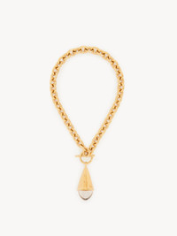 DESCRIPTION Chloe Prism necklace combining a chunky gold brass chain with a bi-material, faceted pendant detailed with clear resin. A T-bar link and Chloe logo engraving finish this piece. PRODUCT DETAILS Necklace in brass & resin - One size only - Chloe logo engraving Color: Gold & Transparent Item code: CH25AJN51RSB7ZM CARE INSTRUCTIONS To ensure this item's quality and longevity, wear it regularly and avoid exposure to direct sunlight and heat. Avoid impact, and contact with water, perfume or chlorine. Store your jewel in its pouch and box when not in use.