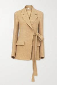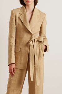 Tie-front organic linen-corduroy blazer