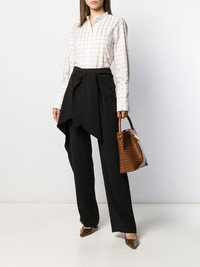 tie front wide leg trousers Going on a special event soon? Make sure you'll be at your best with these black silk tie front wide leg trousers from Chloe. Designed with a front tie overlay design they'll guarantee a classy look anytime. Level up, girl. Highlights - Black - Silk - High waist - Front tie fastening - Two rear welt pockets - Button and zip fly - Loose fit - Regular length Imported Composition Lining: Silk 100% Outer: Triacetate 83%, Polyester 17% SIZE & FIT Model measurements Height 5 ft 10 in(1.77 m) Bust/Chest 35.03 in(89 cm) Hips 35.03 in(89 cm) Waist 23.62 in(60 cm) FittingInformation This piece fits true to size. We recommend you get your regular size Designed to be fitted at the waist and hips, loose over the leg Made with a mid-weight non-stretch fabric Washing instructions Dry Clean Only