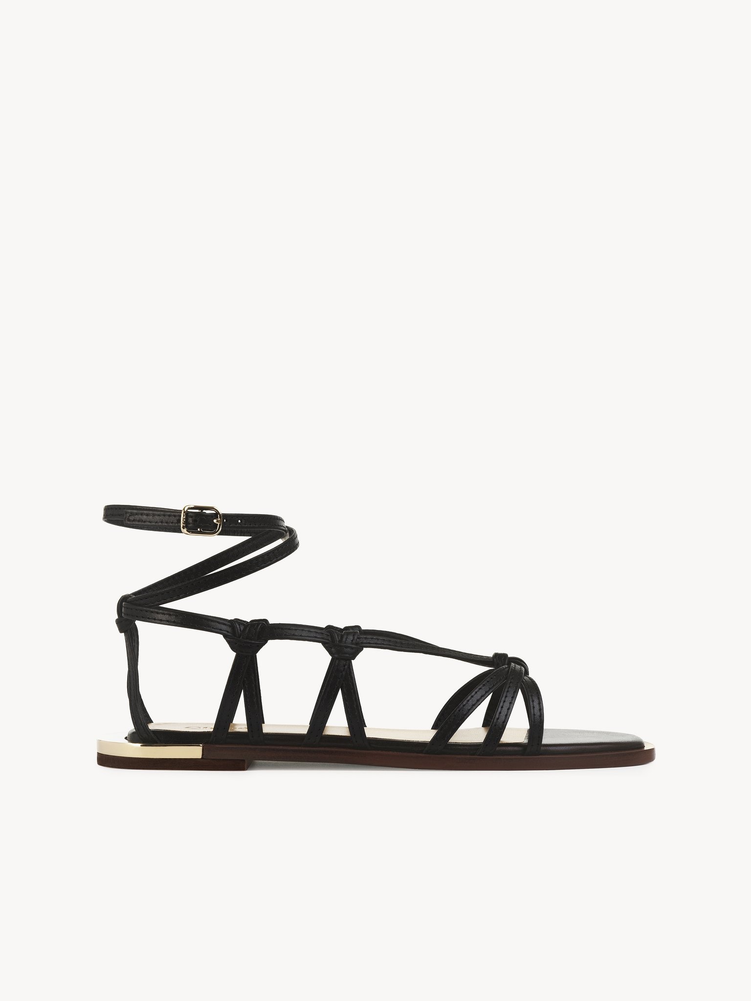 A timeless summer style, the Uma flat sandals are crafted from shiny calfskin with a caged construction inspired by Karl Lagerfeld’s 1993 Chloé show with its musings on Ancient Greek mythology. The strappy silhouette wraps around the foot for a flattering fit while delicate ankle fastenings ensure comfortable wear. At the back, the polished "C" signature hardware lends a sophisticated finish to effortlessly elevate your look. PRODUCT DETAILS Sandal heel height: flat Heel: rubber Inner lining: kidskin Inner sole: calfskin Lining: calfskin Sole: cowhide Upper: calfskin Fit true to size, European sizing - Flat sandals - Easy buckle fastening To make this product, Chloé worked with Leather Working Group (LWG) certified leather manufacturers. LWG certifies tanneries based on their water and energy usage, management of chemicals, solid waste, and wastewater. Color: Black Item code: CHC24U02FHY001
