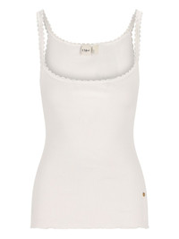 scallop-trim tank top Highlights - Ivory - Ribbed knit - Scallop trim - Scoop neck - Applique logo - Straight hem Imported Composition Cotton 100%, Polyamide 86%, Spandex/Elastane 14% Washing instructions Read Manufacturer Guidelines
