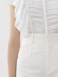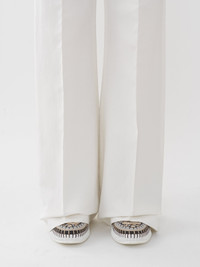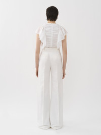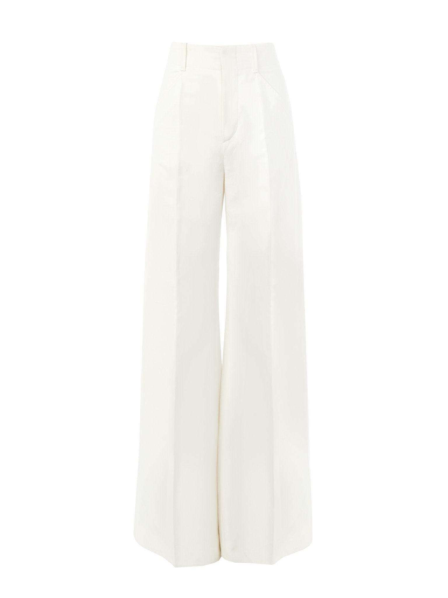 Crafted from ramie viscose canvas with a raw, natural finish, these wide-leg pants have a flattering high-rise silhouette. Masculine pleats lend a tailored finish. PRODUCT DETAILS Wide-leg pants main material: 56% Viscose, 44% Ramie Care: dry cleaning only Fit: high waist, wide-leg, floor-length - The model is 5'10'' (178 cm) and wears a prototype in size 36 - High-waisted pants - Concealed front button & zip - Back welt pockets Color: Iconic Milk Item code: CHC23SPA08037107