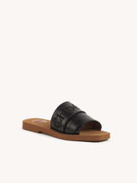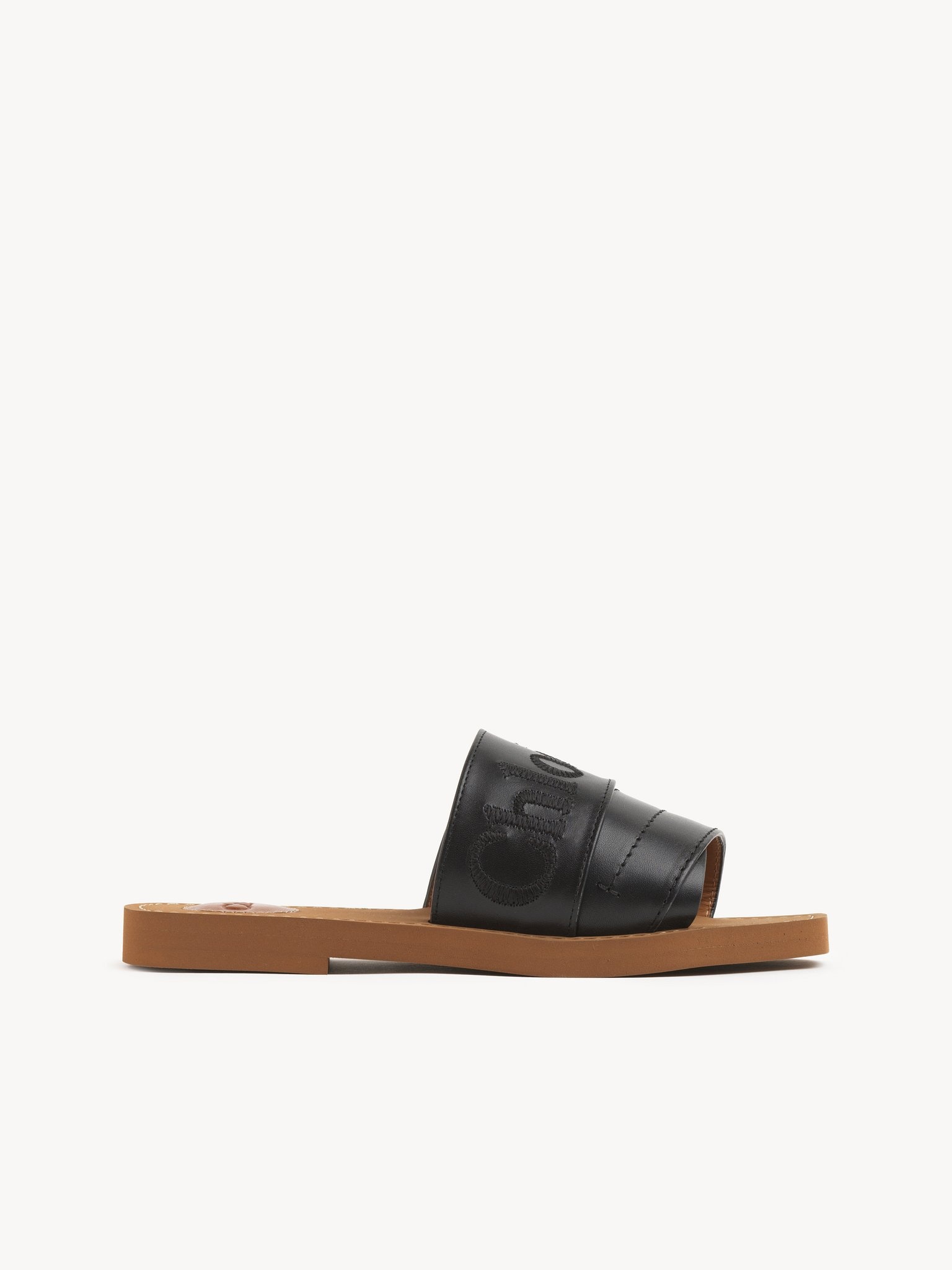 Linked to the leather goods line, this Woody flat mule reveals an interplay of different-sized calfskin ribbons embellished with tone-on-tone Chloé logo embroidery. Together, they form a large upper for a comfortable fit. The easy slip-on design makes this women's flat a summer essential. The Maison's "O" signature adorns the inner sole, while iconic ecru stitches lend an equestrian mood to the rubber sole for a playful twist. PRODUCT DETAILS Flat mule - Upper: calfskin - Inner sole: 95% ethylene vinyl acetate, 5% cowhide - Main lining: calfskin - Sole: ethylene vinyl acetate Fit true to size, European sizing - Women's flat - Slip-on Color: Black Item code: CHC22W188BF001