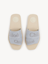 These Woody mules are crafted from different-sized ribbons in lower-impact linen, finished with contrast Chloe logo embroidery. The line's iconic ecru stitches detail the recycled rubber sole while the Maison's "O" creates a signature finish on the inner sole. PRODUCT DETAILS Flat mule - Upper: 90% linen, 10% polyester - Main lining: 90% linen, 10% polyester - Inner sole: 95% ethylene vinyl acetate, 5% cowhide - Sole: ethylene vinyl acetate Fit true to size, European sizing - Flat - Slip-on Linen, hemp and ramie cultivations emit fewer greenhouse gases and require less water compared to other conventional natural fibers, which is why they are considered lower-impact materials by nature. Color: Pearl Blue Item code: CHC23U188EF40V