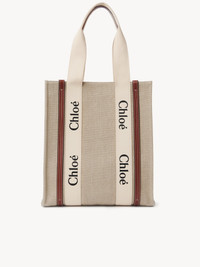 This Woody N/S tote bag revisits the Maison's iconic tote in a laptop-friendly, unisex silhouette with a relaxed spirit for everyday use. Crafted from linen canvas and shiny calfskin, this practical tote bag features a roomy main compartment with a practical flat pocket inside. The bag's sharp, modern lines are emphasized by the contrasting leather strips and the signature Chloé logo ribbon. Linen lining matches a refined finish with a lower environmental impact. Carry this tote bag comfortably on the shoulder. All about Woody... The Woody line is characterized by the signature Chloé logo carried over from the Maison's iconic mules. It showcases a modern, minimalist silhouette ranging from nano to large sizes. PRODUCT DETAILS N/S tote bag in linen canvas, calfskin and webbing with Chloé logo Main material: Linen Secondary material: Calfskin Main lining: Linen Trim: Polyester Carry: Shoulder - 2 long handles - 1 spacious main compartment - 1 internal flat pocket Comes with a dust bag - Width: 13.8" (35 cm) - Height: 15.7" (40 cm) - Depth: 4.3" (11 cm) - Handle drop: 9.4" (24 cm) This tote bag is made from linen. In an effort to limit its environmental impact and have a positive influence on society, Chloé is accelerating its transition to more responsible sourcing. This progress is most notably reflected in the introduction of linen – an inherently low-impact material – to the collection. Follow all care instructions on the insert. To make this product, Chloé worked with Leather Working Group (LWG) certified leather manufacturers. LWG certifies tanneries based on their water and energy usage, management of chemicals, solid waste, and wastewater. Color: Sepia Brown Item code: CHC24SS366I2627S