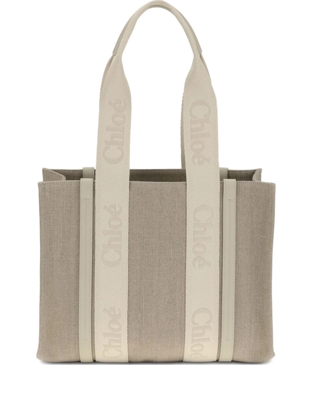 Woody tote bag Highlights - Light grey - Linen - Logo-print straps - Top handles - Rectangular shape Made in Italy Composition Linen/Flax 100% SIZE & FIT Measurement DEPTH 3.93 in(10 cm) HEIGHT 10.23 in(26 cm) STRAP 9.84 in(25 cm) WIDTH 13.77 in(35 cm)