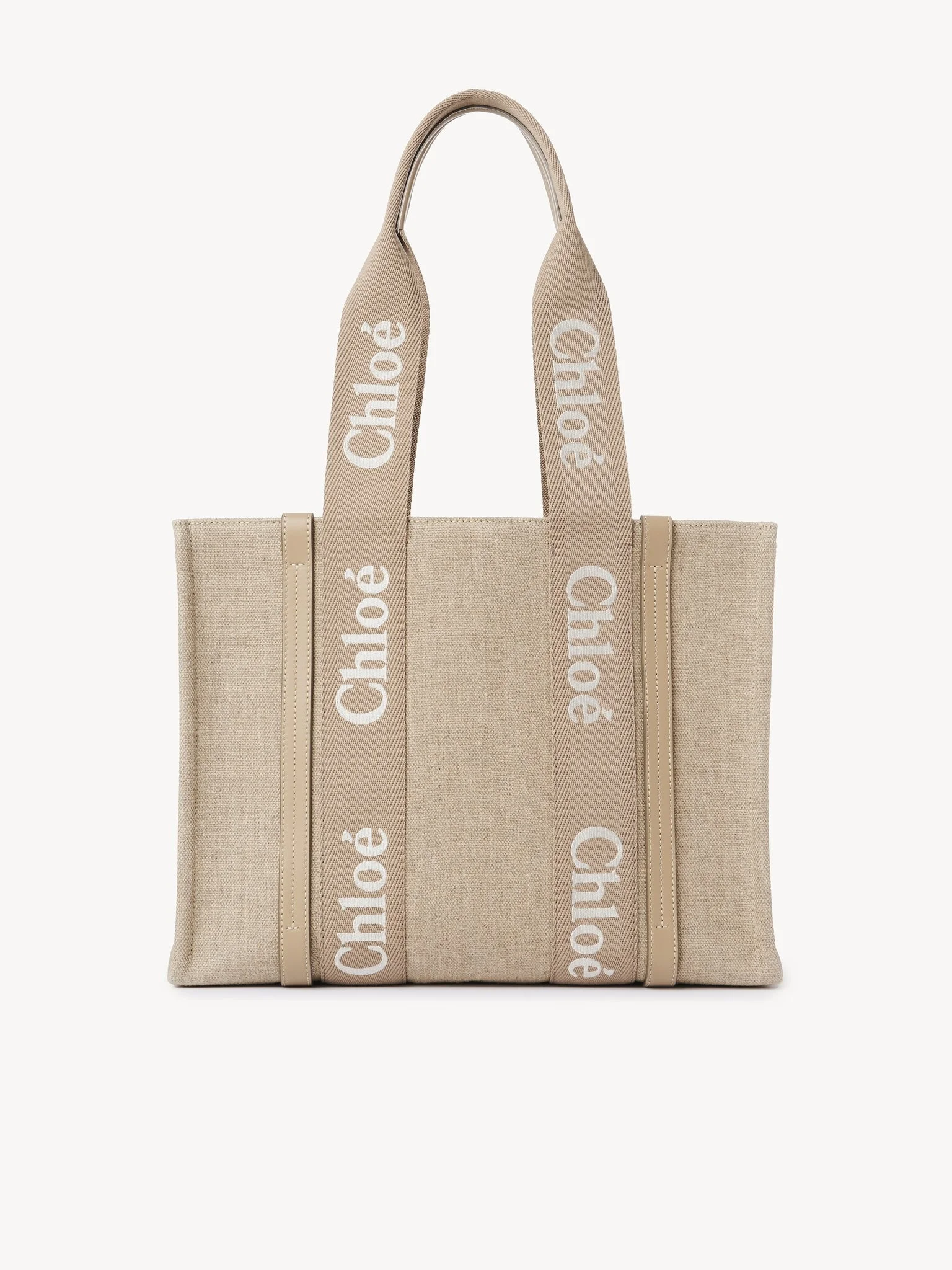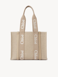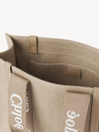 This Woody tote bag is crafted from linen canvas, elevated by contrasting vertical strips in shiny calfskin and signature canvas ribbons embroidered with the Chloe logo. Carry on the shoulder or in the hand with the double handles. PRODUCT DETAILS Tote bag in linen canvas, calfskin and webbing with Chloe logo embroidery Main material: Linen Secondary material: Calfskin Main lining: 68% Linen, 32% Cotton Trimming: Polyester Carry: Short shoulder & hand - 2 long handles - 1 spacious main compartment - 1 internal flat pocket Comes with a dust bag - Width: 14.6" (37 cm) - Height: 10.2" (26 cm) - Depth: 4.7" (12 cm) - Strap drop: 10.6" (27 cm) This handbag is made from a woven fabrication adapted to leather goods requirements. A water-repellent treatment was applied to the fabric, but rain exposure should be avoided. Avoid rubbing this material against color-contrasting materials and shield it from humidity, light, heat, liquids and greasy substances. Follow all care instructions on the insert. Linen, hemp and ramie cultivations emit fewer greenhouse gases and require less water compared to other conventional natural fibers, which is why they are considered lower-impact materials by nature. To make this product, Chloe worked with Leather Working Group (LWG) certified leather manufacturers. LWG certifies tanneries based on their water and energy usage, management of chemicals, solid waste, and wastewater. Color: Boyish Brown Item code: CHC23AS383L1720E