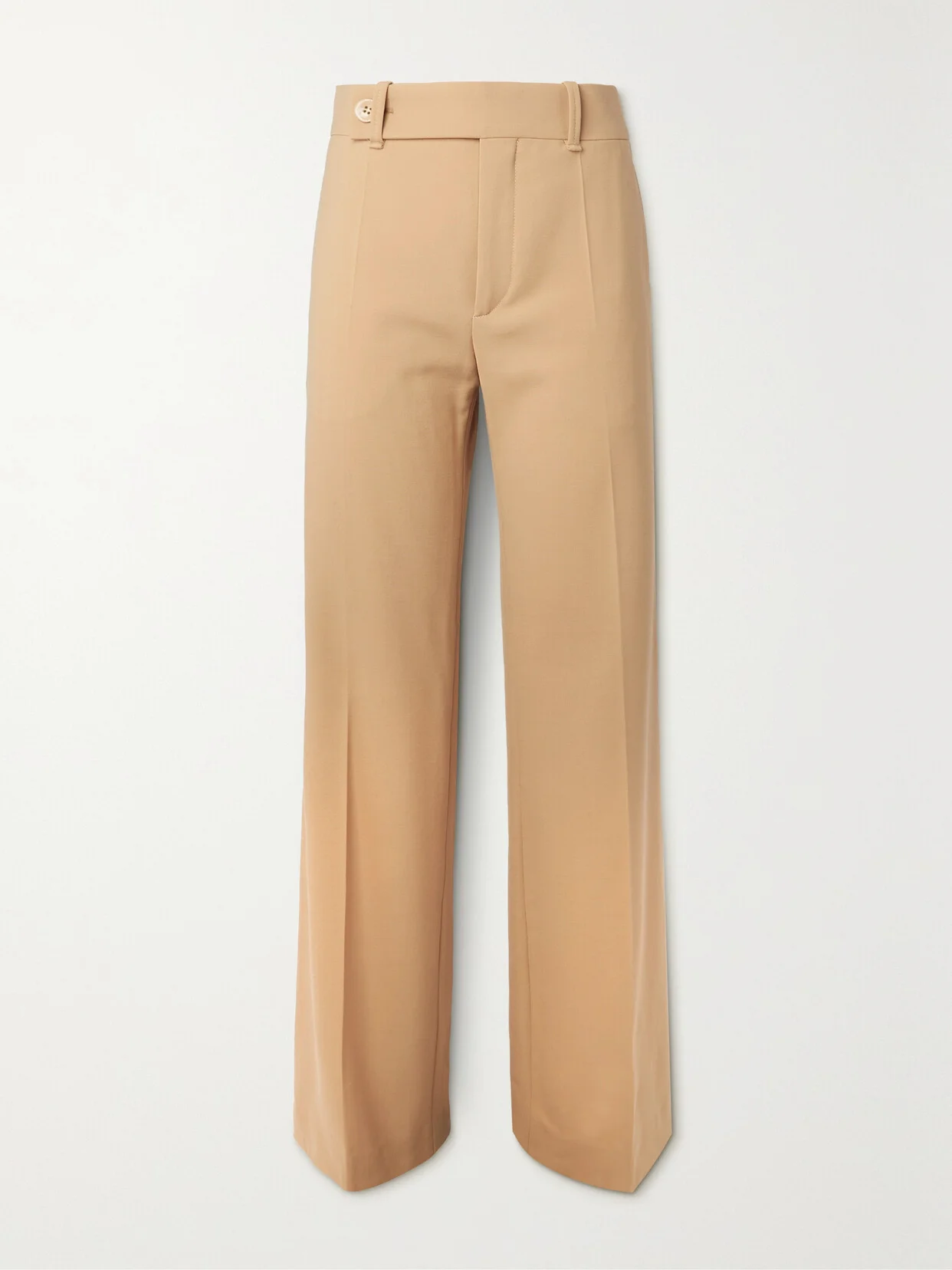 Neutral tailoring is favored for its versatility and timelessness, so you're sure to wear Chloe's beige pants for numerous occasions. They're made from wool-blend and have a wide, asymmetric waistband and wide legs with elongating pressed creases. Style yours with a cardigan or tonal blazer.