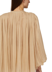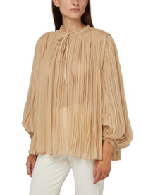 This long-sleeved wool blouse from Chloé features a classic crew neck and a stylish lavaliere/tie-neck detail for a touch of elegance. The logo at the back label adds a discreet designer touch. Versatile and timeless, this blouse is a perfect addition to any wardrobe for a polished and sophisticated look. DESCRIPTION - long-sleeved - crew neck - logo at the back label - lavaliere/tie-neck DETAILS AND CARE MATERIAL: 100% Wool COLOR: barley_brown COUNTRY OF MANUFACTURE: Slovakia PRODUCT CODE: CHLY7A84BRWNA1AA00 The model is 5ft 10in / 1.78m tall and wears a size FR 36.