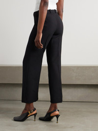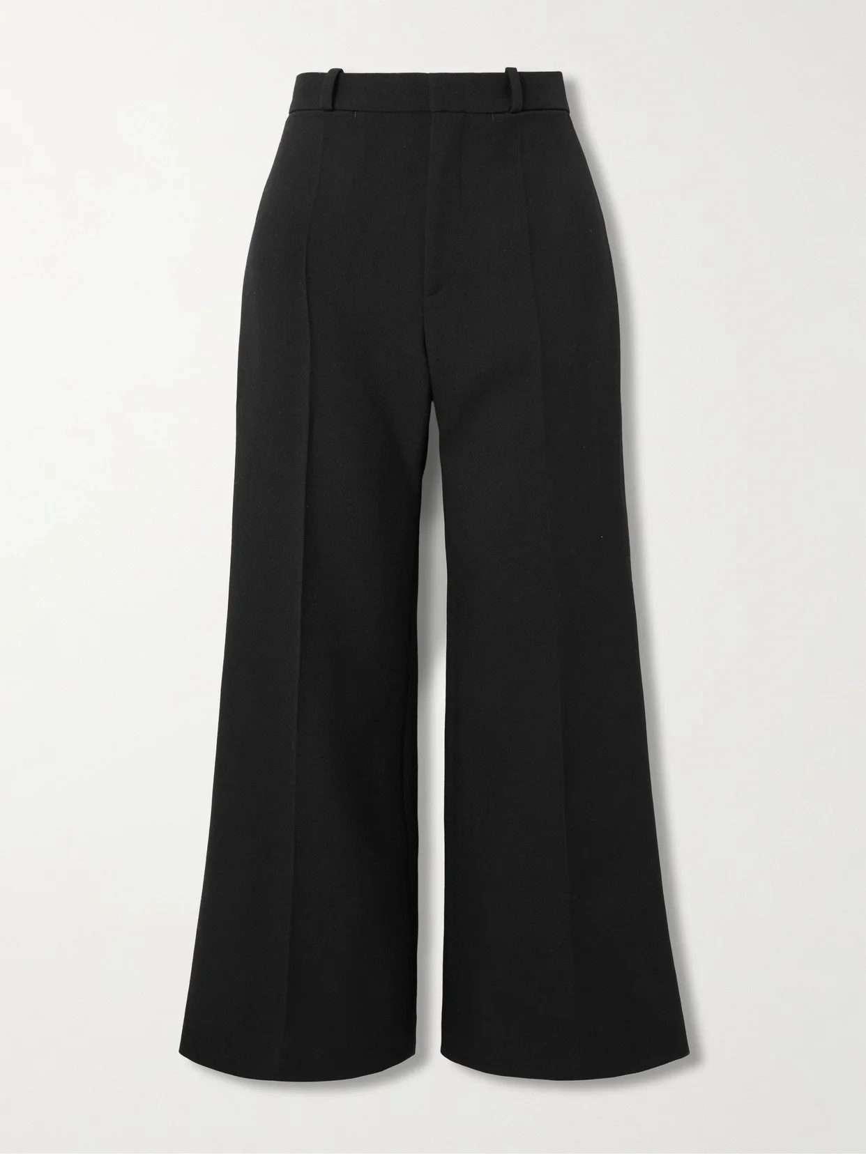 Chloe's pants have subtle flared cuffs, giving them a chic, retro vibe. They're tailored from wool and have sharply pressed creases that trace from the high-rise waist through the legs.